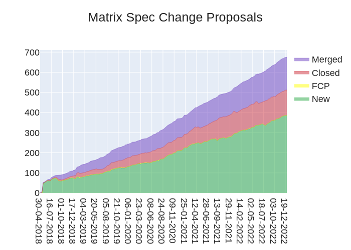 Here's your weekly spec update! The heart of Matrix is the specification - and this is modified by Matrix Spec Change (MSC) proposals. Learn more about how the process works at https://spec.matrix.org/proposals.